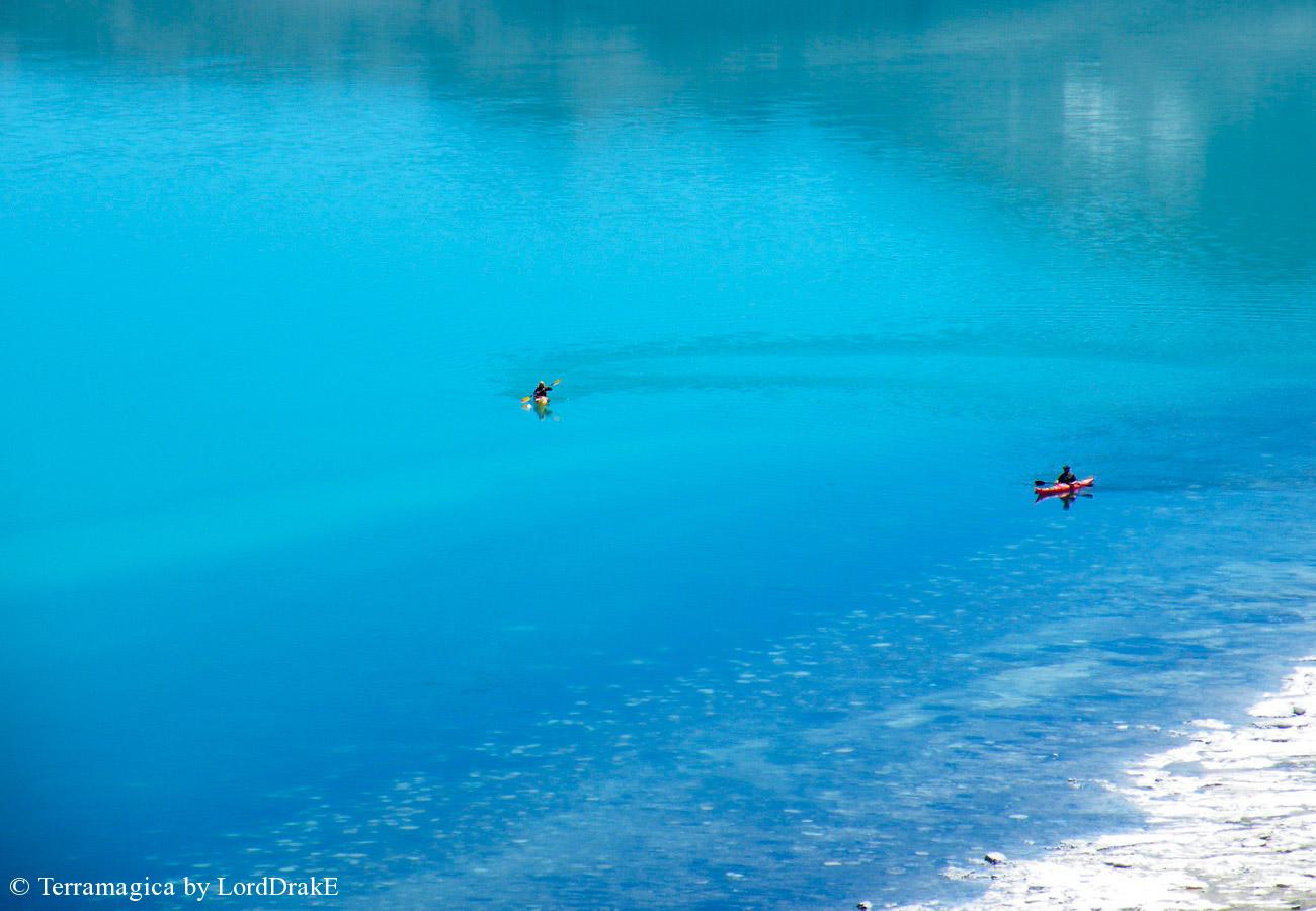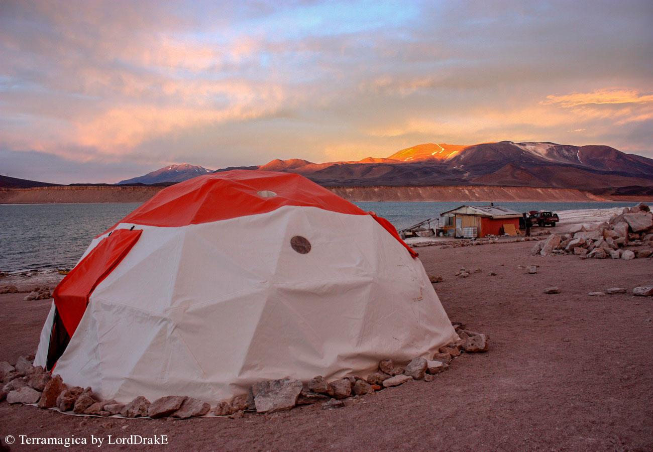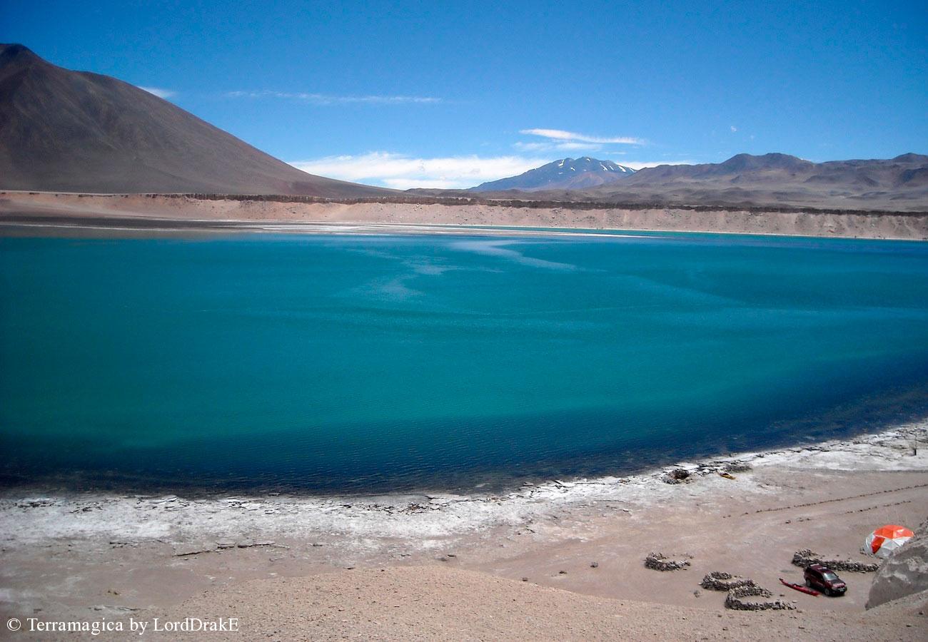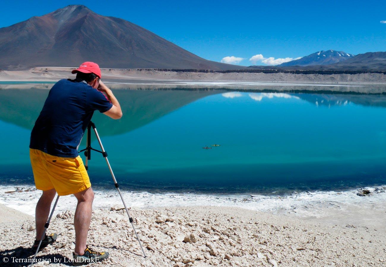A orillas de nuestro campamento base, cercano a una zona de aguas termales, lanzamos nuestros kayak a las transparentes aguas de esta laguna turquesa, y lentamente nos fuimos deslizando en nuestros kayaks, rodeado de un exuberante y surrealista paisaje desertico, pero lleno de colores. La carencia de oxígeno se hace sentir al estar a 4350msnm, y debemos remar lentamente, las cristalinas aguas estan a muy baja temperatura y el agua esta saturada de minerales, los cuales le otorgan un sabor bastante salado.
